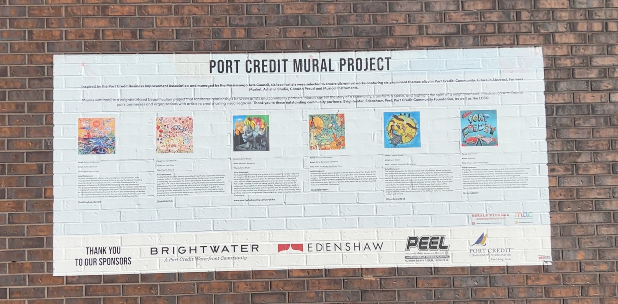 Lynn Taylor is an Indigenous artist, part of the Oneida Nation of The Thames reserve in Ontario (Turtle Clan). On the side of an LCBO in Port Credit — a prominent neighbourhood in Mississauga — she painted Creation Story with Sky Woman depicting the Haudenosaunee story of Turtle Island’s beginnings